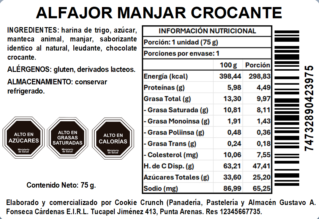 - Manjar crocante: relleno con manjar con suaves toques a naranja y bañado con chocolate con crocante.