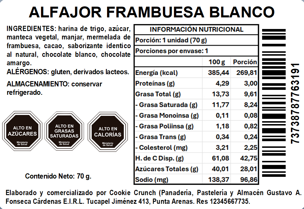 - Frambuesa: relleno con mermelada de frambuesa y manjar y bañado con chocolate blanco.