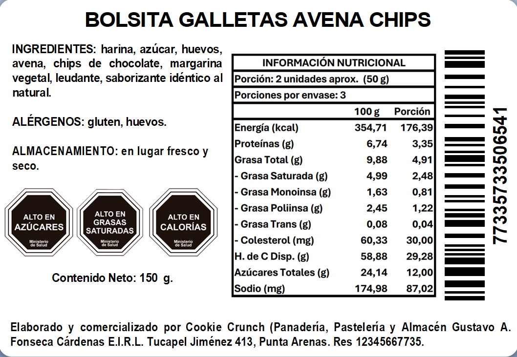 Bolsita Galletas Avena Chips $ 1.900 cantidad Agregar al carro Solicitar más stock Exquisitas y esponjosas galletas de avena con chips de chocolate