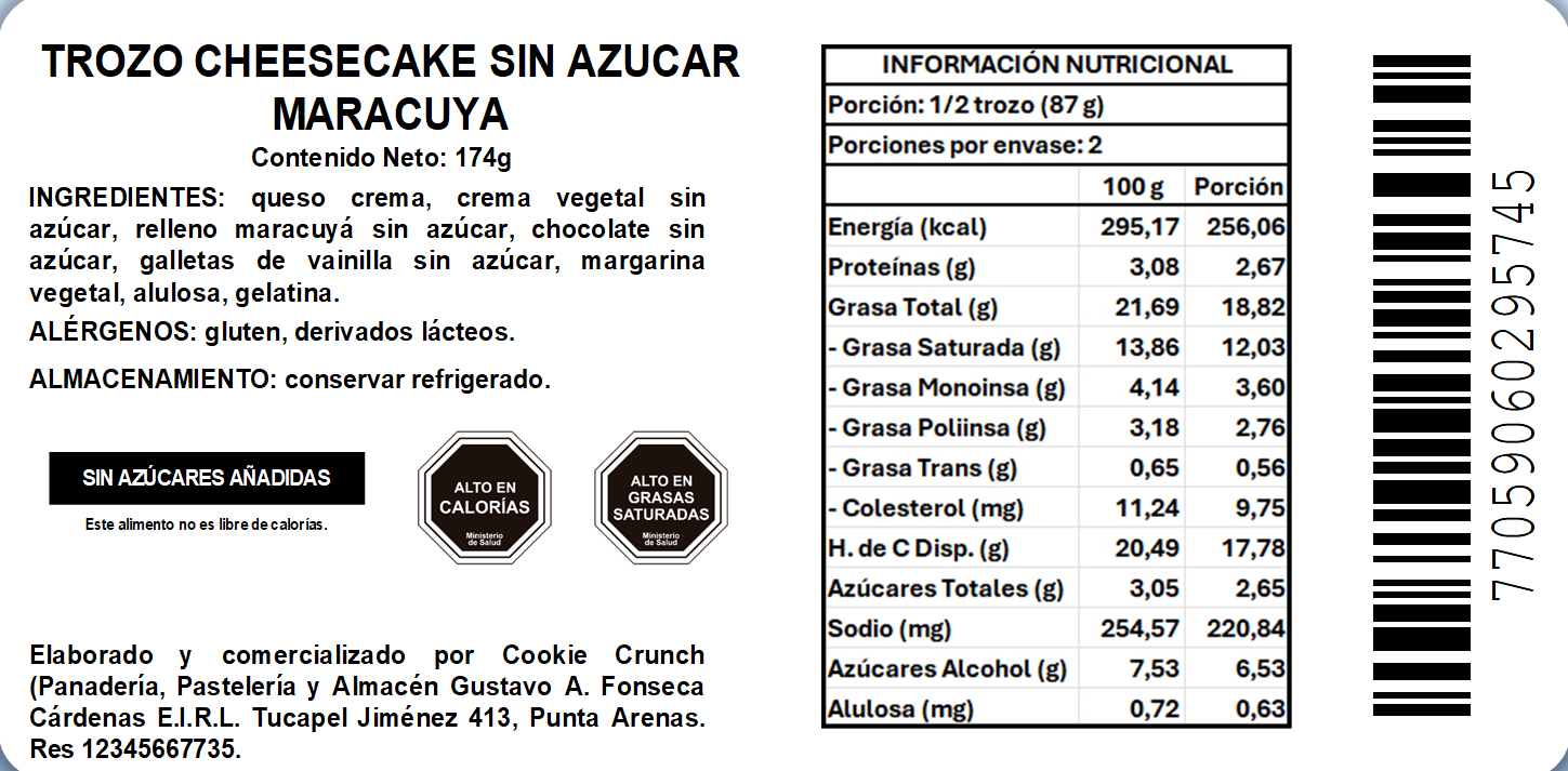 Esponjoso trozo de cheesecake hecho de maracuyá o mermelada de frambuesa sin azúcar, con una base de galleta sin azúcar molida y bañado en chocolate sin azúcar.