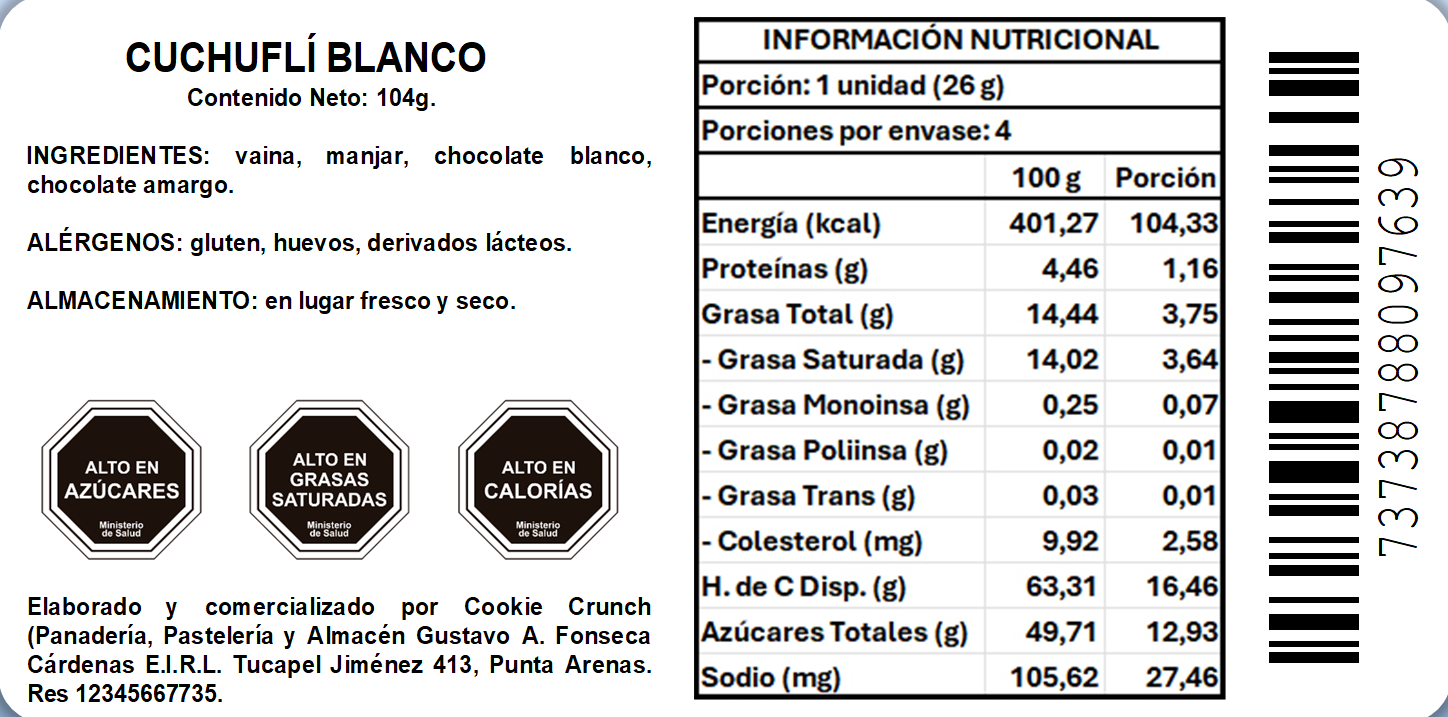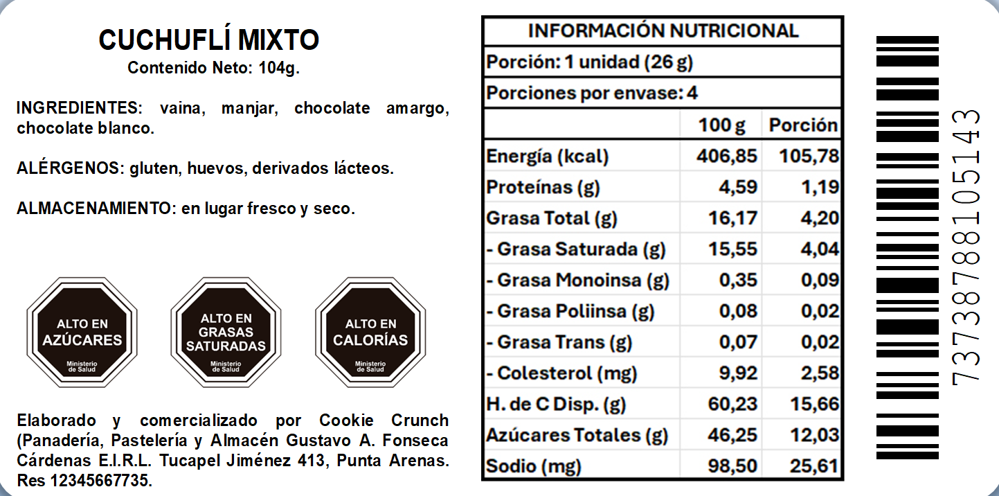 - Mixto: 2 cuchuflí bañados en chocolate blanco y 2 cuchuflí bañados en chocolate amargo.