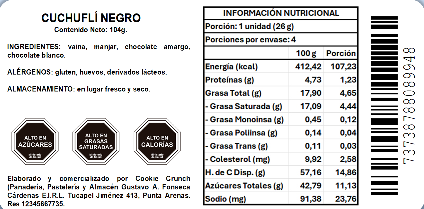 - Negro: 4 cuchuflí bañados en chocolate amargo.