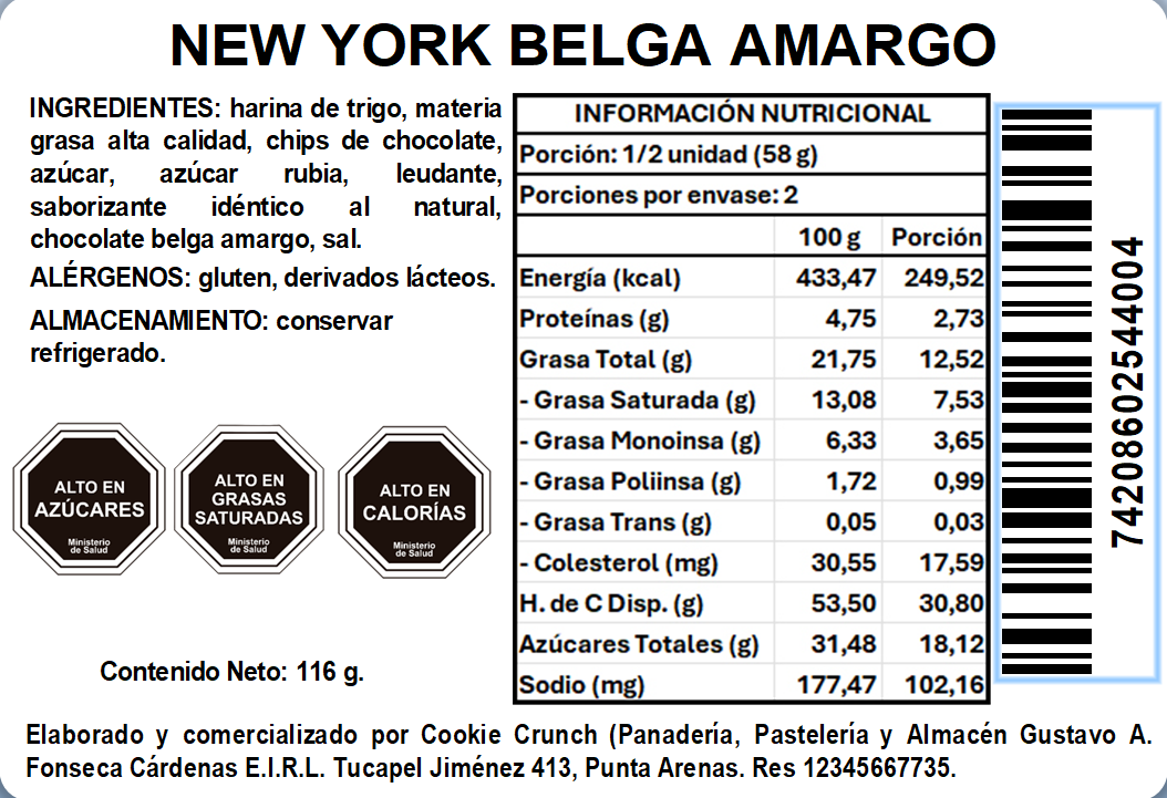 - Chocolate Belga Amargo: Galleta de vainilla con topping de chocolate belga amargo.