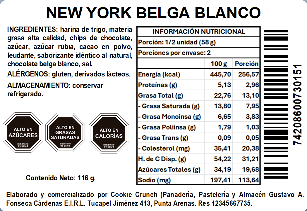 - Chocolate Belga Blanco: Galleta de chocolate con topping de chocolate belga blanco.