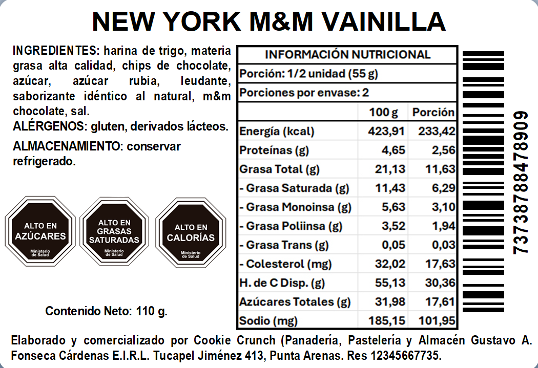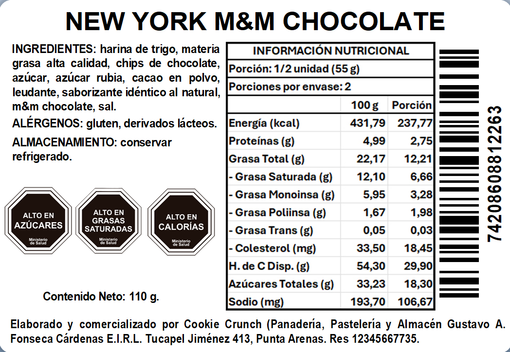- M&M Chocolate: Galleta de chocolate con topping de M&M.