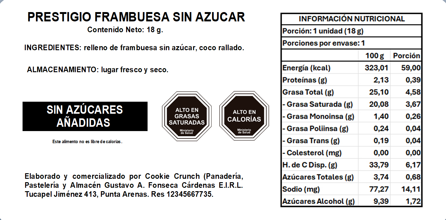 - Frambuesa: coco rallado y mermelada de frambuesa, bañado en chocolate sin azúcar.